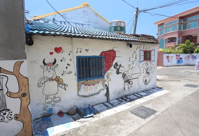 - 特色門面彩繪: 除了大型壁畫,很多村民家的鐵門、信箱、甚至水錶蓋都被精心彩繪了!這些小巧思常常藏在角落,仔細尋找會發現很多驚喜。我喜歡觀察這些細節,能感受到村民的用心和幽默感(比如水錶蓋畫成乳牛斑紋)。