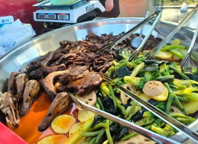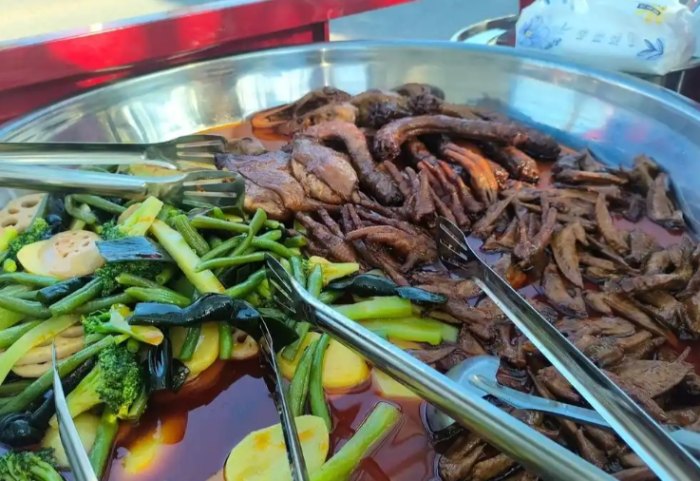 夏天沒胃口?這攤就是救星!主打各式涼拌菜,其中無骨鳳爪是鎮店之寶。鳳爪處理得非常乾淨,完全去骨,吃起來超方便。重點是調味!酸辣比例抓得超好,蒜香濃鬱,帶點微甜,辣度是舒服的提味,不會嗆喉。鳳爪本身Q彈脆口,冰涼入味,超級開胃!攤位上還有涼拌海帶絲、豆乾、毛豆等,選擇很多,買回家當下酒菜或配飯都一流。