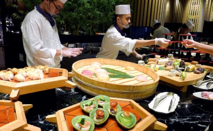五星級飯店的日式Buffet,環境氣派舒適,服務到位。海鮮部分精緻度高,生魚片、握壽司(特別是鮭魚親子)品質優。現煮湯品(如蛤蜊湯、味噌魚湯)鮮美。烤物、炸物也有水準。價格屬高檔,但食材品質和用餐體驗對得起價位。適合追求質感勝過數量的饕客。