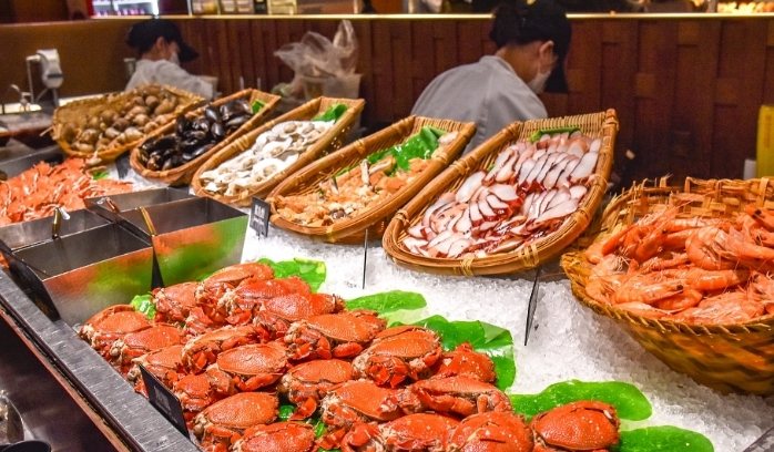 五星級飯店的高級感,食材等級普遍不錯。生蠔是招牌之一,品質穩定。牛排、爐烤牛肉也很強。甜點精緻到捨不得吃。價位頂天,適合慶祝特殊節日,平常日荷包會哭泣。海鮮種類不算最多,但質感好。