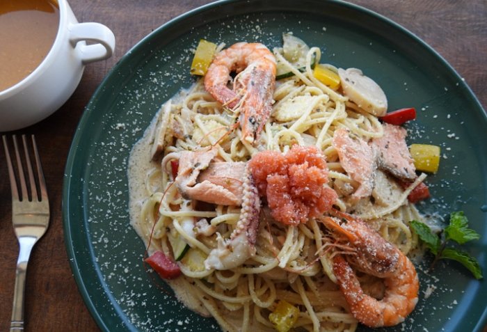 2. 文青老宅裡的創意混搭 - 泰式酸辣海鮮義大利麵 (若當季有): 酸辣風味鮮明直接。