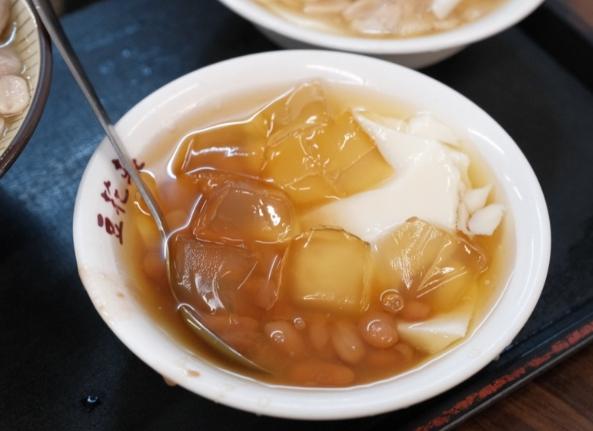 吃了一圈鹹的,總要來點甜的收尾對吧?「寧夏夜市必吃」的甜品代表,我首推這家「古早味豆花莊」。他們家標榜遵循古法製作,豆花口感特別綿密細緻,介於布丁和傳統豆花之間,豆香非常濃鬱。糖水是用二砂糖熬煮,甜度適中不死甜,帶著溫和的焦香。配料選擇也很多,我最愛點綜合口味:粉圓Q彈、花生煮得鬆軟、紅豆飽滿綿密、芋圓地瓜圓有咬勁。冰冰涼涼一碗下肚,瞬間解膩,完美結束一場夜市戰鬥! 這碗豆花,就是寧夏夜市之旅最清爽的句點,沒吃到真的會遺憾!